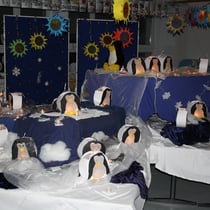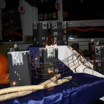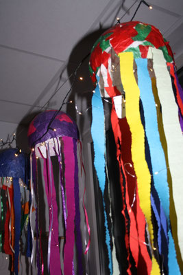 verwandeln die Klassenräume in wirklich sehenswerte Ausstellungsräume. Zur Öffnungszeit der Fackelausstellung ab 17.30 Uhr wird die Schule ausschließlich von Lichterketten beleuchtet, so