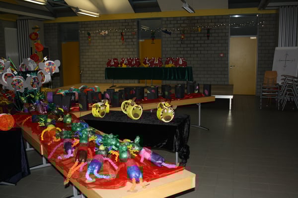 Da wir in diesem "Coronajahr" auf unsere beliebte Fackelausstellung verzichten mussten, haben wir alternativ eine schulinterne Ausstellung aller Martinslaternen in der Aula aufgebaut, die die Kinder sich klassenweise anschauen können.
