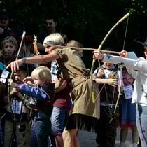 Viele kleine und große Cowboys und Cowgirls, bei uns in friedlicher Harmonie mit den Indianern, bevölkerten das Gelände der Richard-Schirrmann-Schule. Der Schulchor sang nach der Begrüßung unseres Direktors Adi Leweke zusammen mit allen Besuchern das Indianerlied „Flieg wie ein Adler“. Dann galt es das Können in Wettrennen und Spielen zu beweisen und Kreativität bei verschiedenen Bastelarbeiten zu zeigen. Da gab es Pferderennen, Bogenschießen und Indiaca basteln und spielen, da wurden Perlenarmbänder und lederne Beutel für gewonnene Goldtaler hergestellt, um nur einige Angebote zu nennen. Zusammen mit Eltern, Verwandten und Freunden genossen die Kinder das schöne Wetter und wurden mit Würstchen, Salaten, Kuchen und Waffeln versorgt.